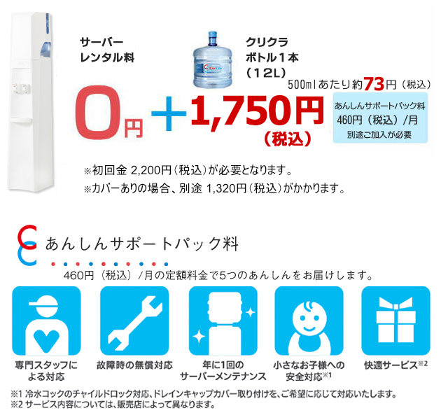 クリクラのウォーターサーバーはサーバーレンタル料無料※